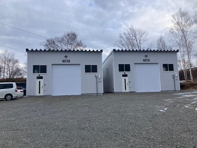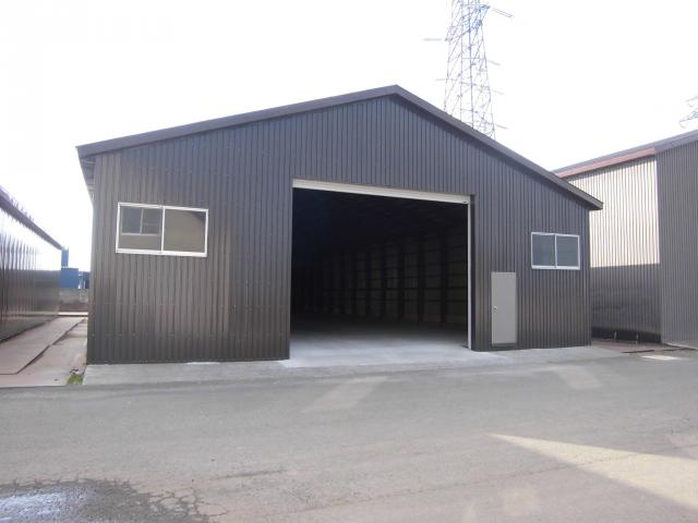 【恵庭市戸磯新築倉庫】36号線沿いの新築貸倉庫です。上下水道引き込み、トイレ、台所の設置あります。倉庫前に駐車場も確保できます。業種・条件等はお問い合わせください。